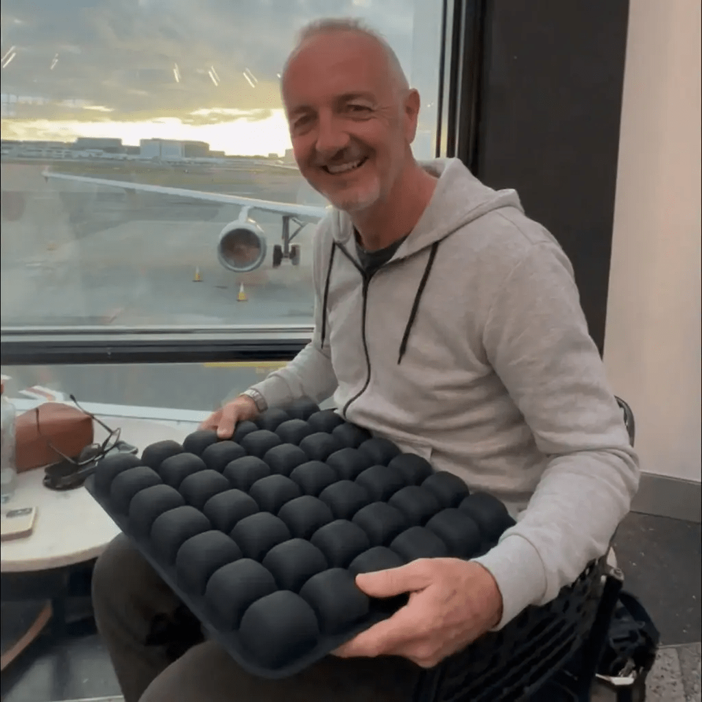 It adds a plush cushioning layer so you’re not sitting on hard plastic for hours. The air-filled 6x6 grid absorbs pressure and gives that premium, supported feel economy seats lack. Weight spreads evenly, circulation stays normal, and the seat finally feels comfortable, like a small upgrade you can take anywhere.
